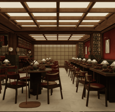 Una experiencia gastronómica única y envolvente. La combinación de la cultura nipona con influencias modernas da vida a un ambiente oriental donde cada detalle cuenta. Desde la disposición de los muebles hasta la elección de los materiales, cada aspecto está diseñado para crear una atmósfera cálida y acogedora.
